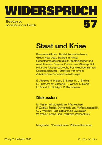 Aus dem Editorial von Widerspruch, Beiträge zu sozialistischer Politik, Nr. 57