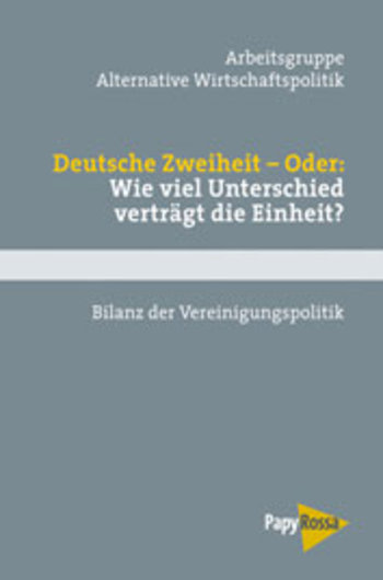 Arbeitsgruppe Alternative Wirtschaftspolitik, Deutsche Zweiheit - Oder: Wie viel Unterschied verträgt die Einheit? Bilanz der Vereinigungspolitik, Köln, PapyRossa Verlag, 255 Seiten, 2010. ISBN 978-3-89438-447-0. 16,90 Euro.