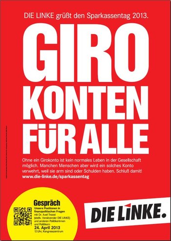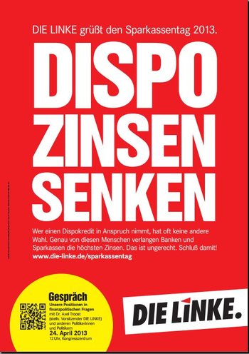 Auch Vertreter der Partei DIE LINKE gehören zu den geladenen Gästen. Leider hat DIE LINKE im Programm des Sparkassentags nicht die Gelegenheit, ihre Verbundenheit mit den Sparkassen zu erläutern und Wünsche zu artikulieren. Dies wollen wir auf dem Wege dieser Internet-Seite tun.