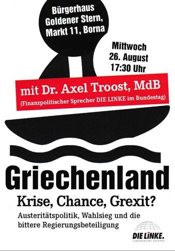 Dr. Axel Troost, weilte im Januar 2015 zu Gesprächen über die künftige Wirtschafts- und Finanzpolitik einer Syriza-Regierung in Athen, und wird die Situation in Griechenland, mögliche Spielräume der aktuellen Schuldenpolitik mit ihren europäischen und nationalen Auswirkungen, sowie über die Chancen und Möglichkeiten eines grundlegenden Politikwechsels diskutieren.