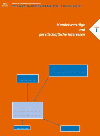 Das Material ist dementsprechend in zwei Module gegliedert, die jeweils mit einer kurzen fachlichen Einführung, und einem knappen didaktischen Kommentar zu den einzelnen Elementen beginnen. In Modul I geht es primär um die ökonomischen Fragen im Feld der Handelspolitik: Welche Interessen spielen hier eine Rolle, in welchem Verhältnis stehen sie zu ökonomischen Theorien und welche Machtasymmetrien zwischen Staaten(blöcken) oder gesellschaftlichen Interessengruppen sind relevant? Modul II thematisiert die primär politischen Fragen: Was bedeuten vertraglich vereinbarte Privatisierungen, Schiedsgerichte oder regulatorische Kooperation im Hinblick auf demokratische Entscheidungsprozesse und die Durchsetzungsfähigkeit bestimmter Interessen? Grundsätzlicher gefasst: Wie demokratieverträglich sind Handelsverträge in ihrer heute dominanten Form?