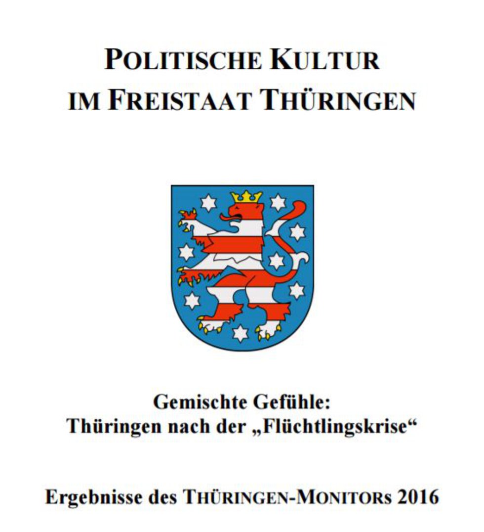 Traditionell verbindet der THÜRINGEN-MONITOR ein jährlich bzw. im regelmäßigen zeitlichen Abstand wiederholtes Fragenprogramm, sein „Standbein“, mit einem wechselnden Schwerpunktthema. In diesem Jahr ist es die mit dem Zustrom von über einer Million Flüchtlingen und Asylsuchenden, durchmischt mit Arbeits- und Armutsmigrant_innen, überwiegend aus islamischen Ländern, verbundene Herausforderung für Politik und Gesellschaft. Dies ist ein in der Geschichte der Bundesrepublik einmaliger Vorgang und es ist das erste Mal in der Geschichte des THÜRINGEN-MONITORs, dass zwischen zwei Erhebungspunkten, im gegebenen Fall zwischen 2015 und 2016, eine so dramatische, die öffentliche Debatte so stark bestimmende Entwicklung stattgefunden hat. Was in diesem Jahr mit der politischen Kultur in unserem Land geschehen ist, ob es eine Radikalisierung und Polarisierung gegeben hat, ob eine akute Gefährdungslage für unsere Demokratie entstanden ist, wie die Menschen in Thüringen ihre neuen Mitbewohner_innen wahrnehmen und welche Erwartungen sie hier an die politisch Verantwortlichen haben, wird auf den folgenden Seiten nachzulesen sein.