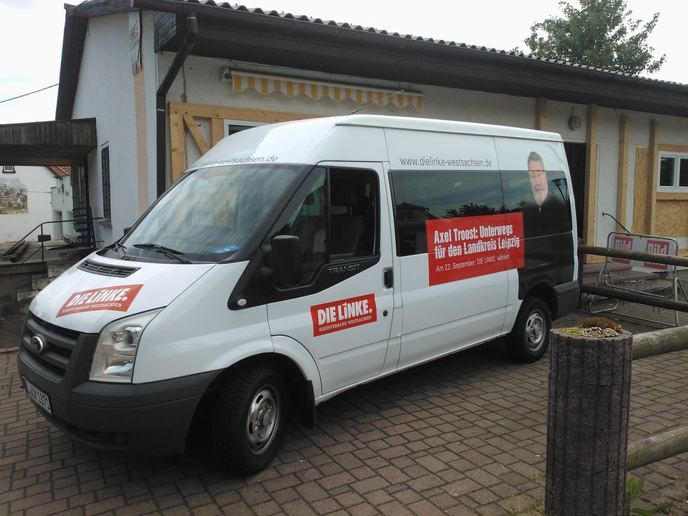 In der Nacht zum Freitag brannte ein Wahlkampfbus der LINKEN im Landkreis Leipzig aus. Wie die Polizei mitteilte, fing das Fahrzeug auf seinem Parkplatz in der Abstdorfer Straße in Borna gegen 3.00 Uhr nachts Feuer. Nach derzeitigen Erkenntnissen ist von Brandstiftung auszugehen. Das Fahrzeug wurde zur weiteren kriminaltechnischen Untersuchung sichergestellt. Da das Fahrzeug durch die Beklebung eindeutig als Wahlkampfbus der Partei DIE LINKE zu erkennen war, liegt die Vermutung einer politischen Motivation dieses Brandanschlags nahe. Der entstandene Schaden liegt nach ersten Schätzungen im fünfstelligen Bereich.