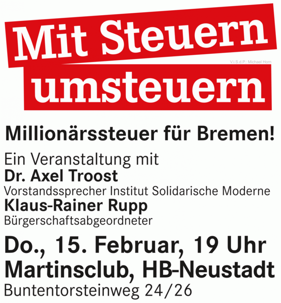 Veranstaltungshinweis: Mit Steuern umsteuern! Millionärssteuer für Bremen!