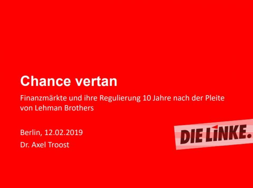 Folienvortrag um Thema Finanzmärkte und ihre Regulierung 10 Jahre nach der Pleite von Lehman Brothers