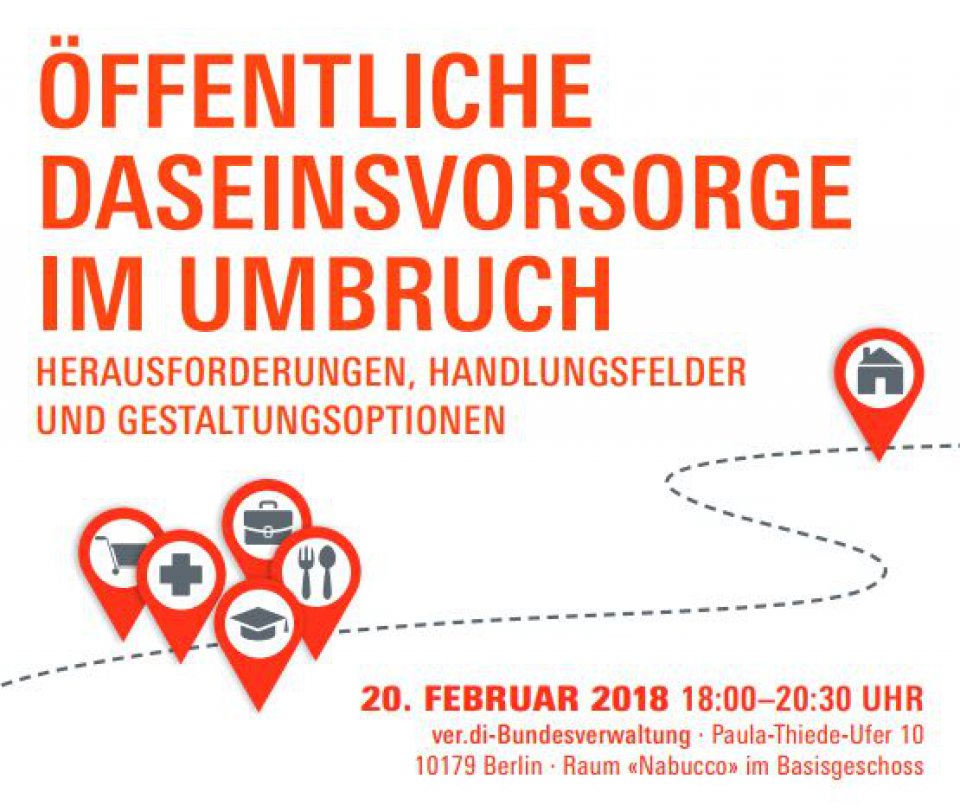 Die öffentliche Daseinsvorsorge in Deutschland steht seit einigen Jahren unter starkem Druck. Jahrelang wurden mit der Politik der Kürzungen und der «Schwarzen Null» viele Bereiche der öffentlichen Infrastruktur auf Verschleiß gefahren. Nun steht die öffentliche Daseinsvorsorge vor weiteren Umbruchsituationen: die demografische Entwicklung, Integrationsförderung und die Aufrechterhaltung öffentlicher Infrastruktur in schrumpfenden Regionen sind einige der politischen Herausforderungen auch der kommenden Jahre.